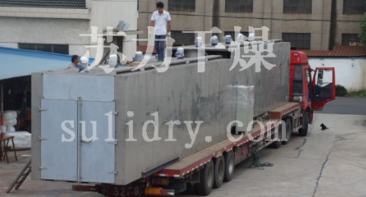 日前广东某公司在96视频在线订购了隧道热风烘箱,设备箱体长度20米,为便与运输及拆卸,将设备分为两段,各10米;配套烘车38辆,手工不锈钢网盘1140只,此设备主要用于良姜的烘干,干燥,深加工处理。我公司已经严格按照客户要求制造设备完毕,现已成功发货。