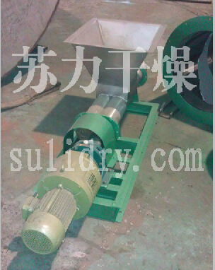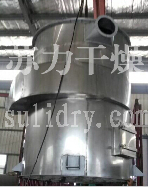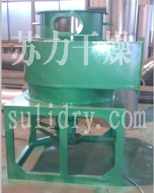 热空气切线进入干燥器底部,在搅拌器带动下形成强有力的旋转风场。膏状物料由螺旋加料器进入干燥器内,在高速旋转搅拌桨的强烈作用下,物料受撞击、磨擦及剪切力的作用下得到分散,块状物料迅速粉碎,与热空气充分接触、受热、干燥。脱水后的干物料随热气流上升,分级环将大颗粒截留,小颗粒从环中心排出干燥外,由旋风分离器和除尘器回收,未干透或大块物料受离心力作用甩向器壁,重新落到底部被粉碎干燥。