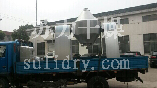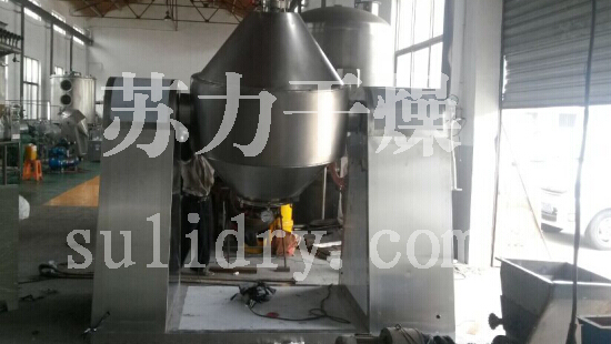 双锥回转真空干燥机是在密闭的夹层中通入热能源(如热水,低压蒸汽或导热油),热量经内壳传给被干燥物料。物料处于真空状态,蒸汽压下降使物料表面的水份(溶剂)达到饱和状态而蒸发了,并由真空泵及时排出回收。物料内部的水份(溶剂)不断地向表面渗透、蒸发、排出三个过程不断进行,物料在很短时间内达到干燥目的。