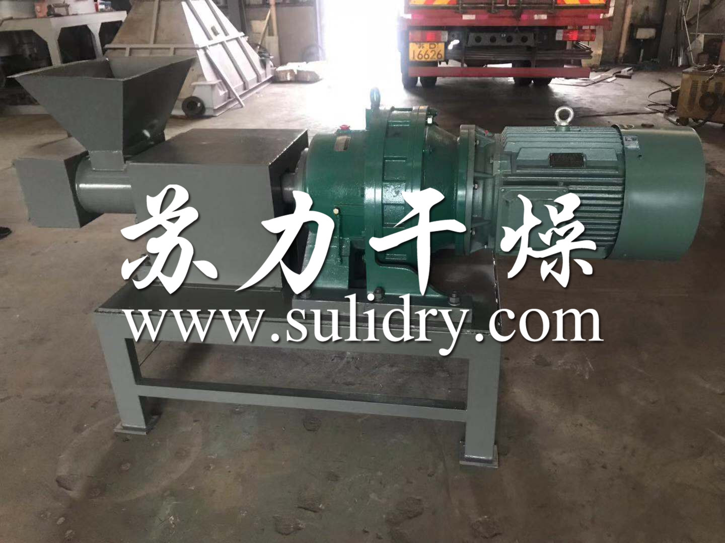 螺杆挤出造粒机为双螺杆,其挤出形式有前挤出和侧挤出二种机型。由驱动、减速、传动箱及主机等部分组成,加入主机内的湿粉状物料,在特殊设计的螺杆元件作用 下经输送压实,开压不均压过程,被送至造粒机头,并被挤出模板,形成同柱状的颗粒产品,从而达到造粒目的。由于粉状物料是在湿态下完成挤出制粒过程,使得 后续操作过程(如:干燥、包衣等)及操作条件得到大大改善。一般可减少现场粉尘量90%以上。