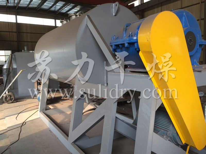 本机是一种新颖卧式间歇式真空干燥设备,湿物料经传导蒸发,带有刮板搅拌器不断清除热面上的物料,并在容器内推移形成循环流,水份蒸发后由真空泵抽出。