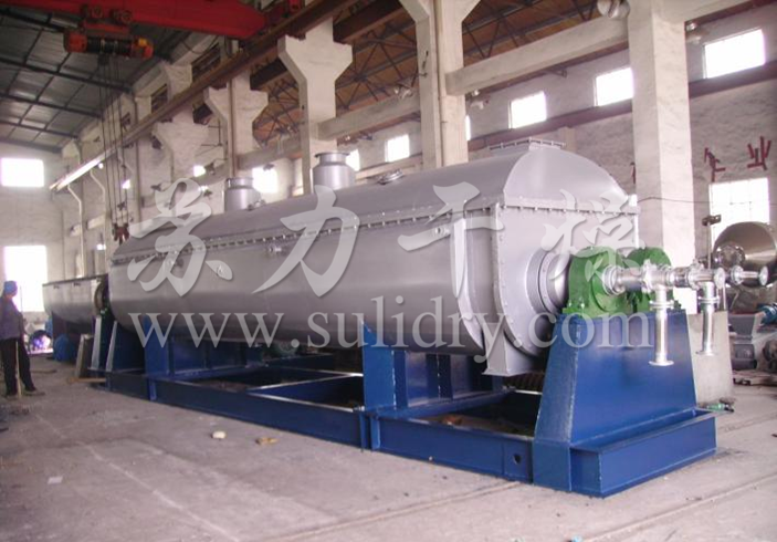 浆叶干燥机已成功地用于食品、化工、石化、染料、工业污泥等领域。设备传热、冷却、搅拌的特性使之可以完成以下单元操作:燃烧(低温)、冷却、干燥(溶剂回收)加热(融化)、反应和灭菌。搅拌浆叶同时又是传热面,使单位有效容积内传热面积增大,缩短了处理时间。楔型浆叶传热面又具有自清洁功能。压缩--膨胀搅拌功能使物料混和均匀。物料沿轴向成"活塞流"运动,在轴向区间内,物料的温度、湿度、混合度梯度很小。用导热油做热介质浆叶干燥机可完成低温燃烧工作。如:二水硫酸钙(Ca2SO4·2H2O) 燃烧转化为半水硫酸钙(Ca2SO4·1/22H2O)。碳酸氢钠(NaHCO3)经煅烧转化为纯碱(Na2HCO3)等。通入冷却介质,如水、冷却盐水等即可用来冷却。如:使用于纯碱行业的浆叶式凉碱机,取代老式的空气冷却凉碱机,节省了能源及尾气处理设备,降低了操作费用。干燥,设备^主要的功能,不使用热空气,使溶剂回收、能源消耗、环境控制处于易处理的理想状态。对需回收溶剂、易燃易氧化热敏性物料尤为适应。已广泛用于精细化工、石化、染料行业。轴向区间内,温度、湿度、混合度的均匀性,使得设备可用来加热或融化,或进行一些固体物料反应。在复合肥及变性淀粉行业均已成功使用。浆叶干燥机可用来对食物和面粉进行灭菌处理。单位有效容积内大的加热面积,很快就将物料加热到灭菌温度,避免了长时间加热而改变物料品质。