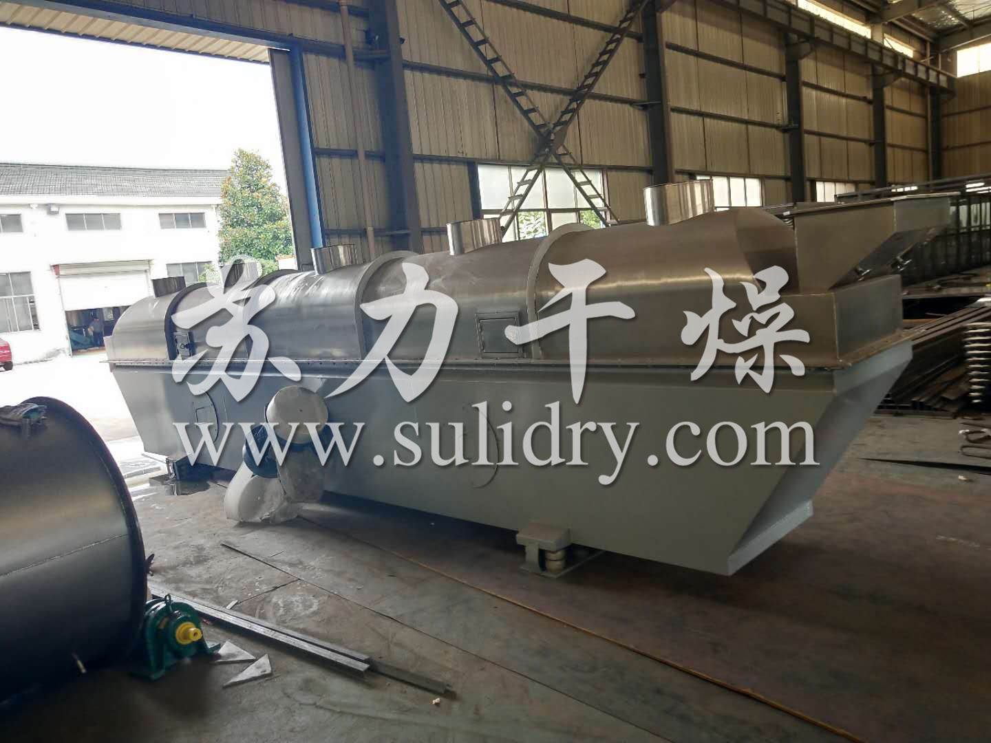 碳酸氢钙烘干机 工作原理: 物料自进料进口进入机内,在振动力作用下,物料沿水平面流化床抛掷,向前连续运动,热风向上穿过流化床同湿物料换热后,湿空气经旋风分离器除尘后由排风1:3排出.干燥物料由排料进口排出。碳酸氢钙烘干机 适应物料: 适用于化工、制药、食…