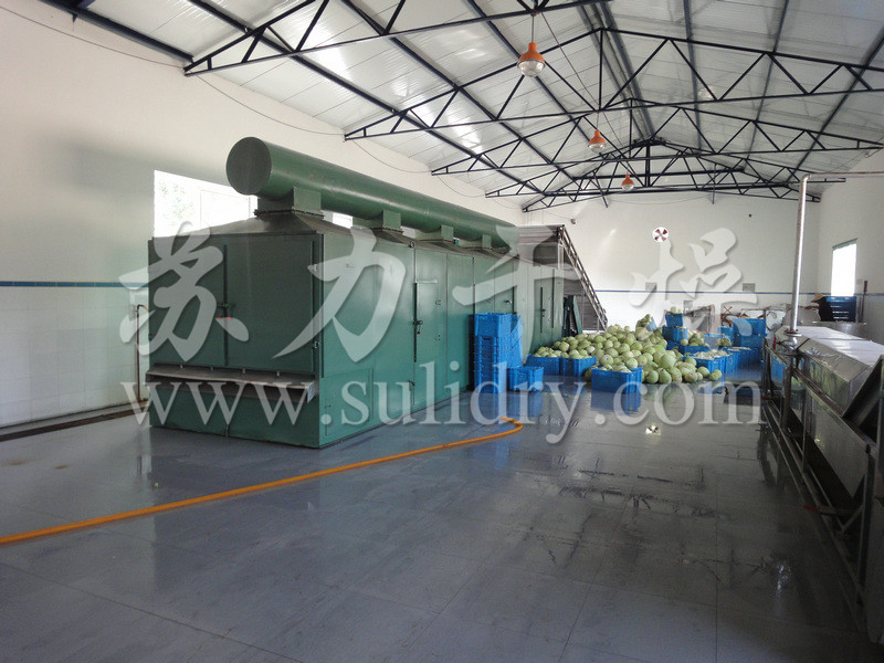 能满足根、茎、叶类条状、块状、片状、大颗粒状等蔬菜物料的干燥和大批量连续生产,同时能很大度的保留产品的营养成份及颜色等。