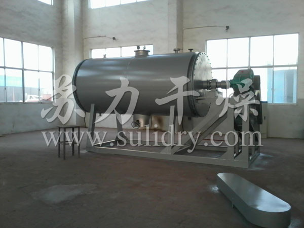 本机是一种新颖卧式间歇式真空干燥设备,湿物料经传导蒸发,带有刮板搅拌器不断清除热面上的物料,并在容器内推移形成循环流,水份蒸发后由真空泵抽出。