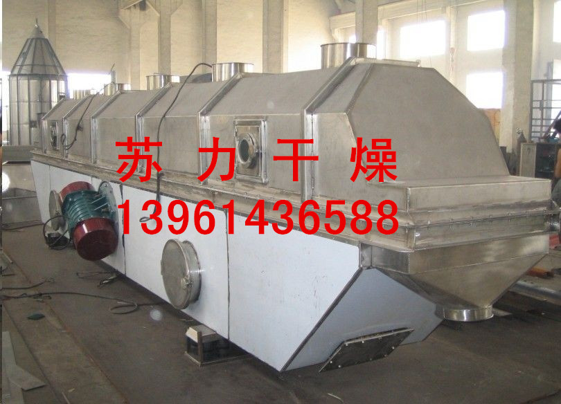 流化床干燥机是由物料自进料进口进入机内,在振动力作用下,物料沿水平面流化床抛掷,向前连续运动,热风向上穿过流化床同湿物料换热后,湿空气经旋风分离器除尘后由排风1:3排出.干燥物料由排料进口排出。适用于化工、制药、食品、脱水蔬菜、粮食、矿产等行业的粉状、颗粒状物料的干燥、冷却等作业。